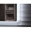 Шкаф можно интегрировать под бытовую технику, а тумба под раковину обеспечит порядок в хранении уходовых и моющих средств. Плавное закрывание дверей делает эксплуатацию удобнее, а гладкие фасады и подсветка создают современный уютный интерьер.