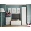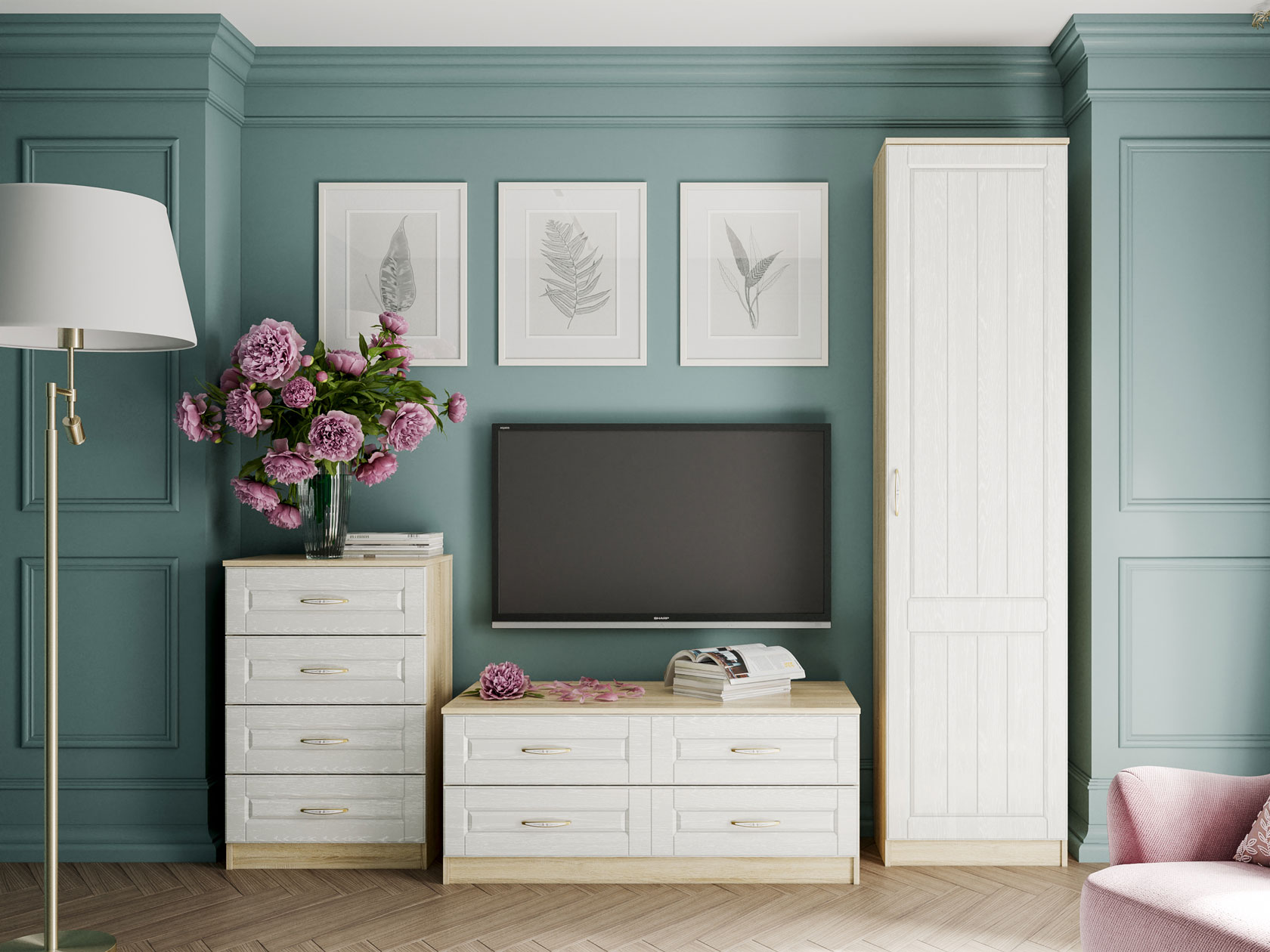 Вместительные выдвижные ящики сохранят в порядке необходимые вещи. Распашной шкаф дополнит систему хранения гардероба и придаст интерьеру завершенный вид. Фасады с изящной фурнитурой и текстурой дерева смотрятся интересно и привлекательно.